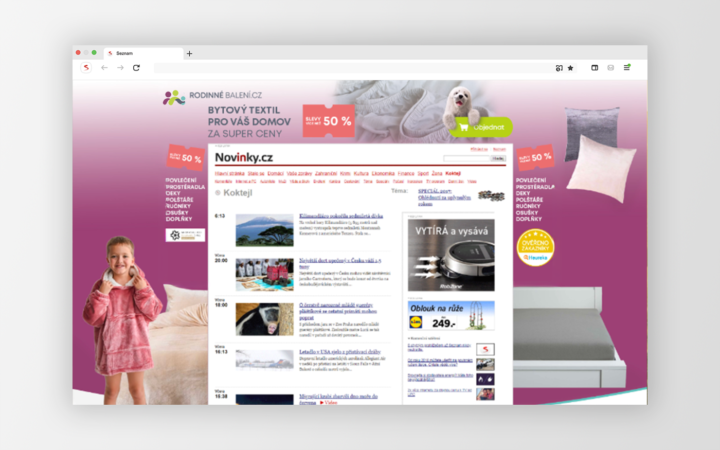 Jako hlavní nástroj padla volba na Branding v Skliku. Formát, který obklopí obsah stránky a získá tak pozornost i v konkurenčním prostředí velkých českých webů.