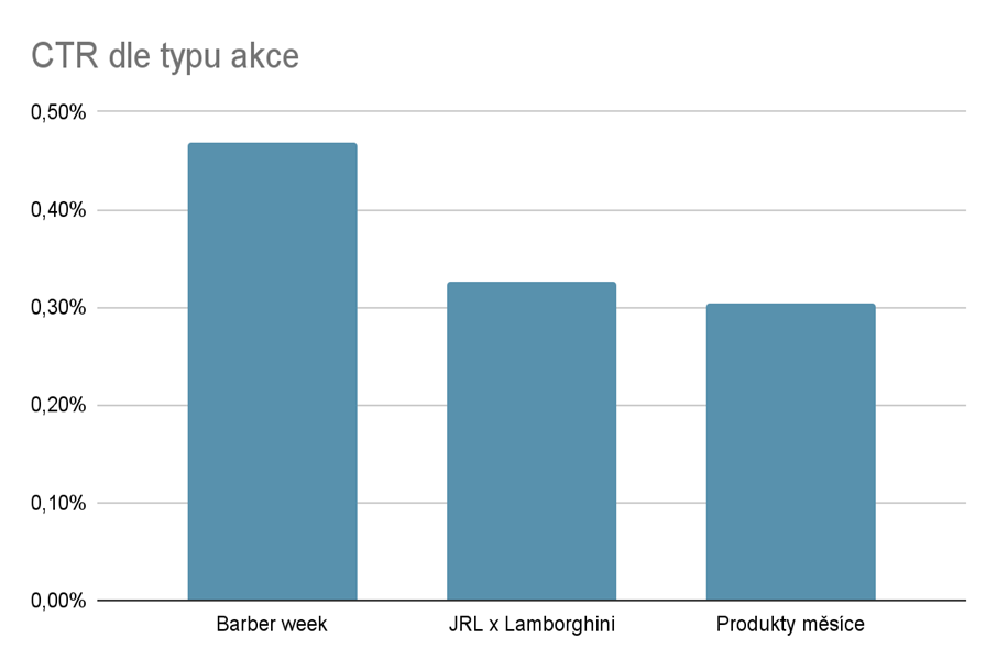 - Nejvýraznějších výsledků dosahovaly kampaně, ve kterých byla Lookalike publika kombinována s jasnou a časově omezenou nabídkou, například během akce Barber Week nebo při předprodeji limitované edice JRL × Lamborghini.