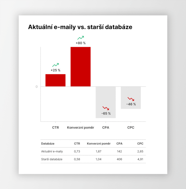 Starší databáze tedy neznamená nefunkční, ale její výkon byl slabší. Čerstvá data přinesla přesnější cílení a vyšší návratnost.