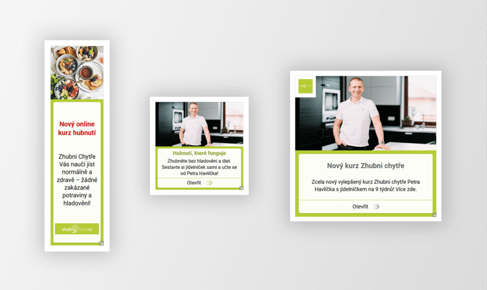 Kampaně běžely v obsahové síti Skliku a kombinovaly statické bannery s kombinovanou reklamou.