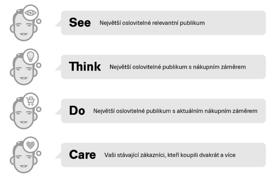 Při plánování komplexních marketingových strategií a také pro jejich vyhodnocení doporučujeme vycházet z frameworku See-Think-Do-Care (STDC).