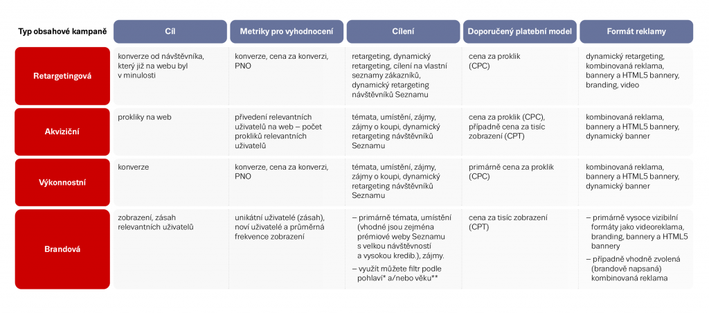 Základní vlastnosti těchto kampaní, rozdíly mezi nimi a způsob jejich plánování podrobně vysvětlujeme v následujících podkapitolách.